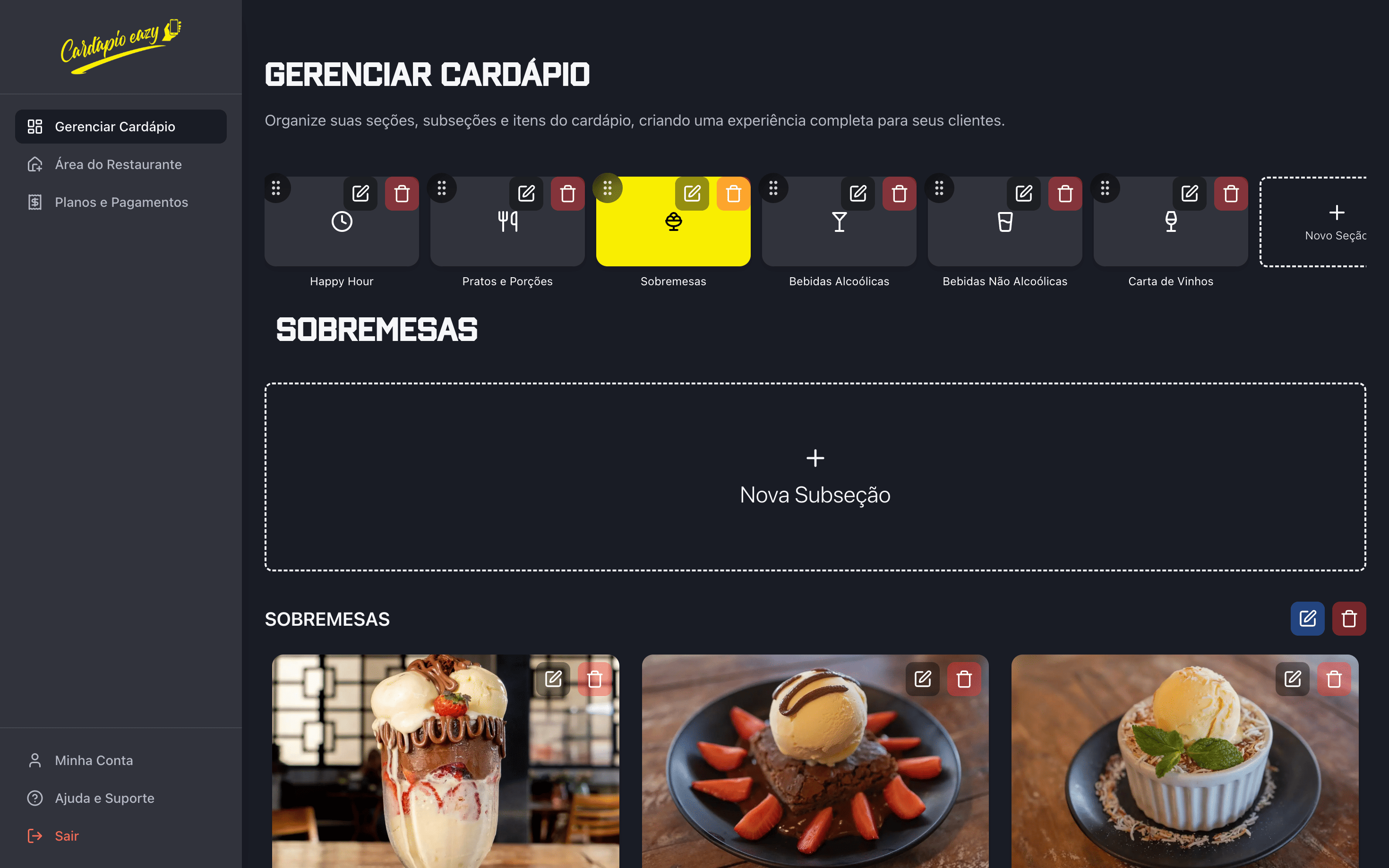 Crie seções, ordene produtos e deixe seu cardápio da forma que preferir.