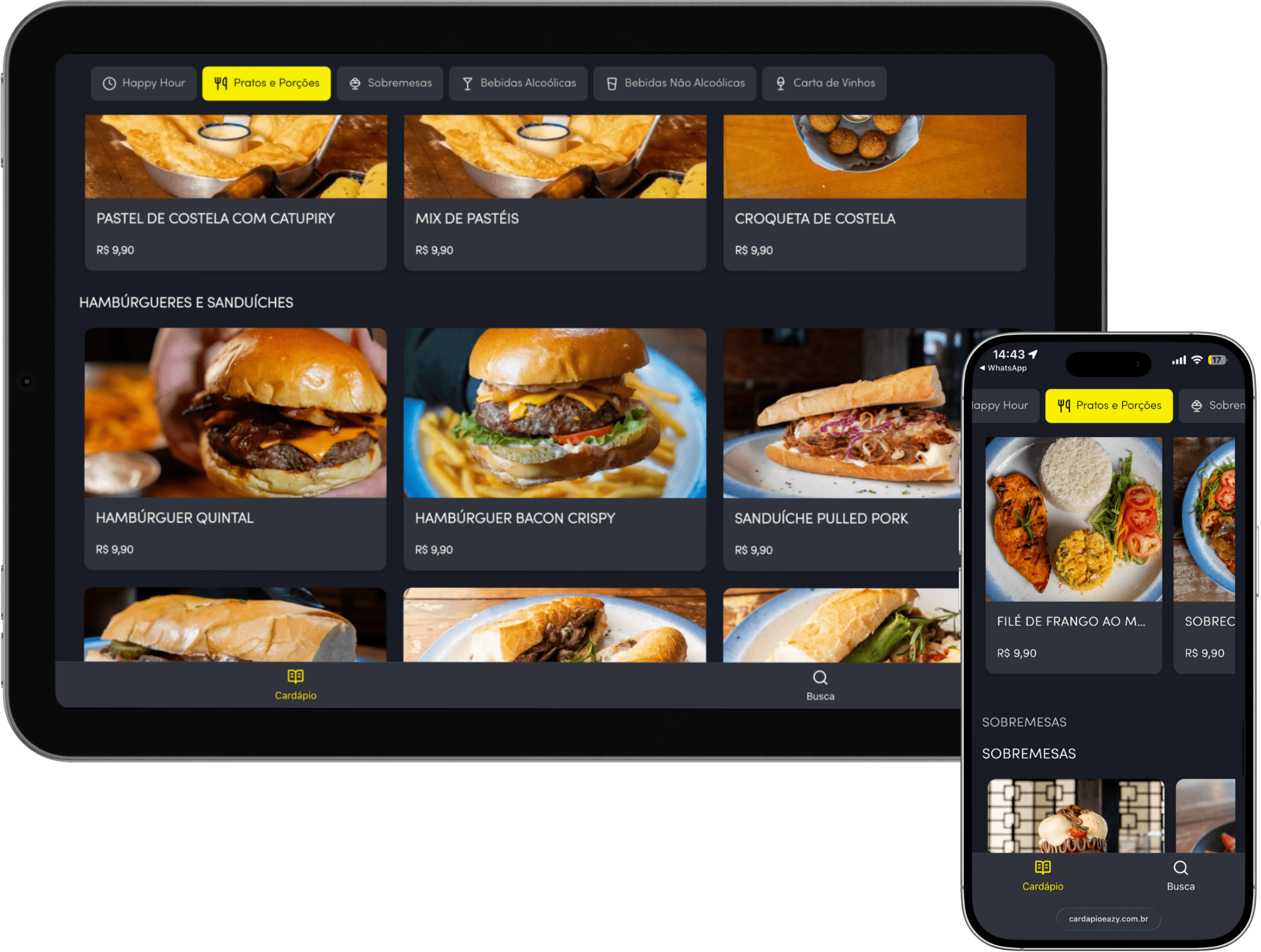 Cardápio digital rápido, moderno e fácil de atualizar. Aumente suas vendas e melhore a experiência dos seus clientes.