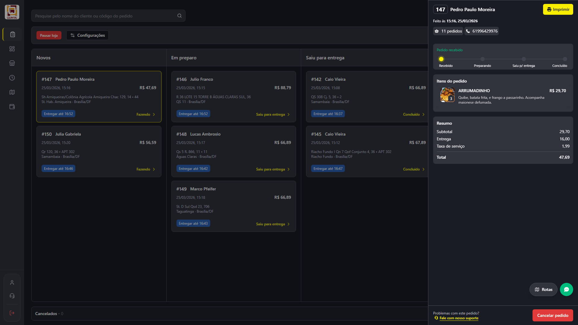 Gerencie seus pedidos com mais agilidade, acompanhe cada etapa da operação e tenha acesso rápido às informações mais importantes do pedido em qualquer dispositivo.